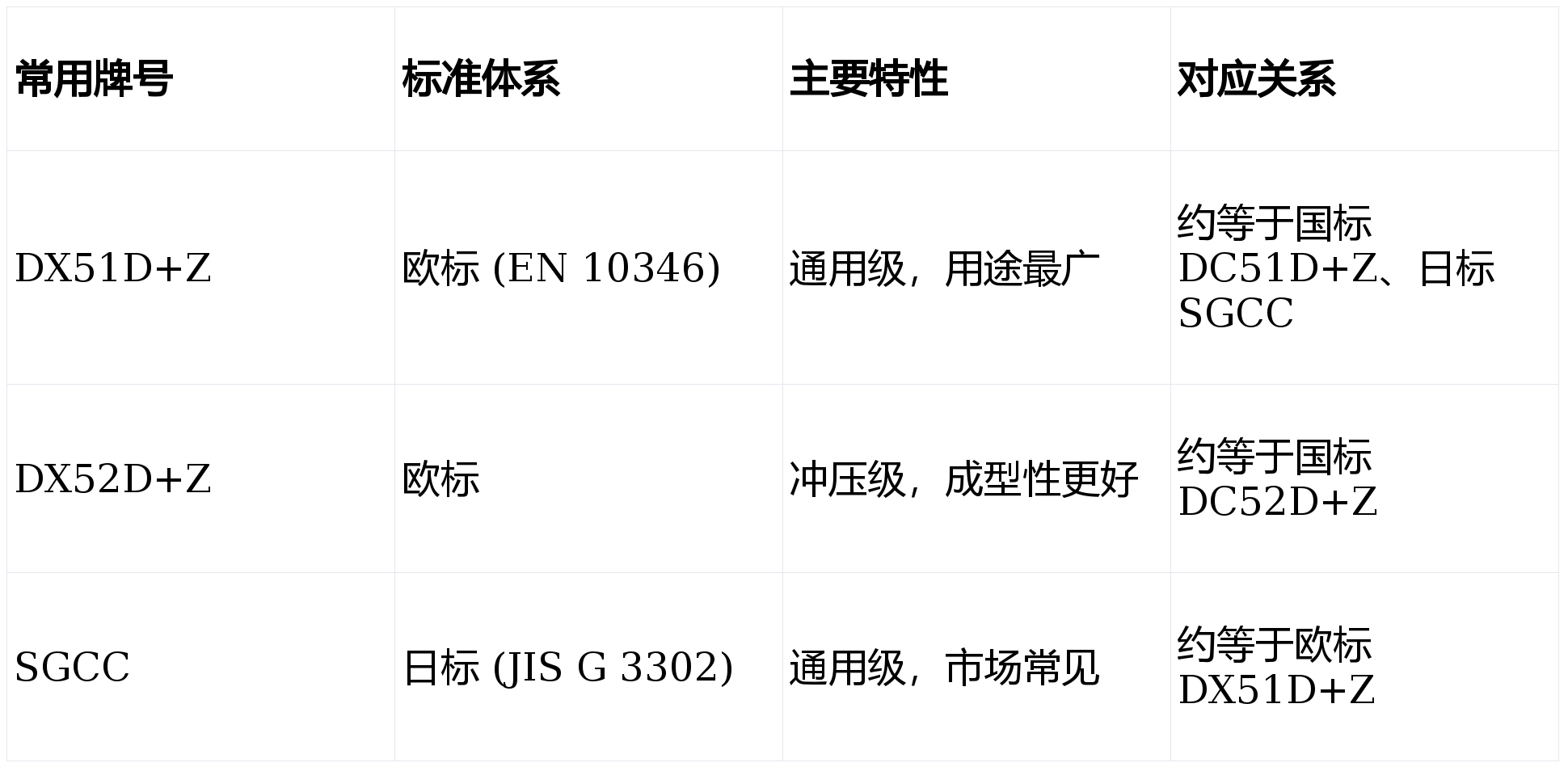 不同标准体系下的牌号可能指向类似性能的产品,了解对应关系便于全球采购。