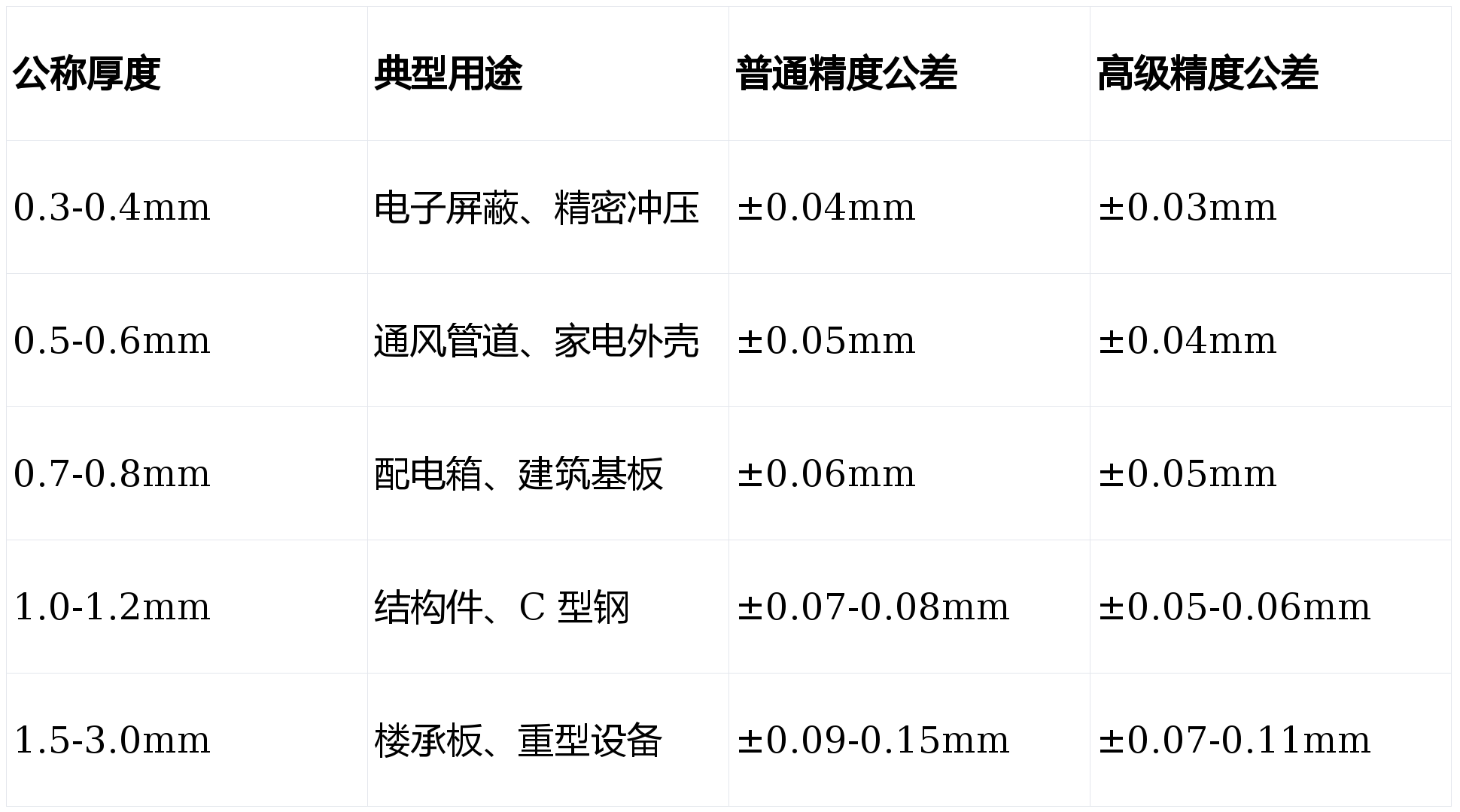 三、厚度规格与公差:精度影响加工质量