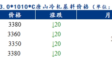 【昨日市场情况】价格方面:截止2025年3月17日17:30,上海市场冷轧板卷市场价格4090元/吨,镀锌板卷市场价格4210元/吨。【近一个月均价情况】截止3月17日17:30,冷轧板卷月均价为4127元/吨,镀锌板卷月均价4248元/吨。【今日市场预判】 市场方面,昨日热卷期货震荡运行,早盘现货市场冷轧板卷价格暂稳,镀锌板卷部分规格上调10元/吨;午后冷轧板卷部分规格下调10-30